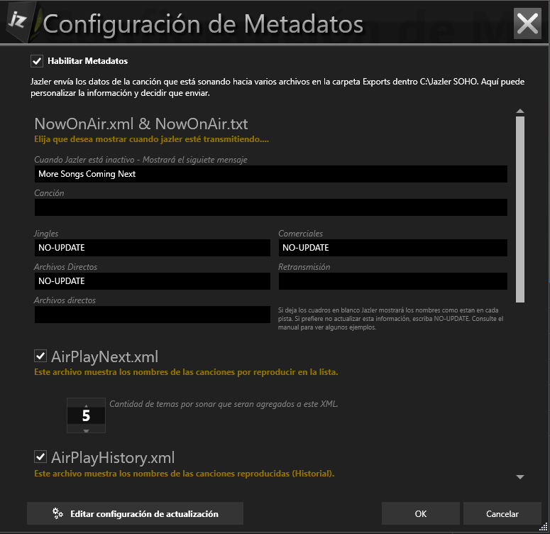 La librería de de canciones de Jazler SOHO está totalmente equipado para sus canciones, categorías, puntos de mezcla con muchas vistas y filtros. Incluimos el OUTRO para que pueda entrar al final de la canción sin montarse en la voz del artista. También puede ver al instante cuando se reprodujo una canción en los últimos días y algunas de sus estadísticas.